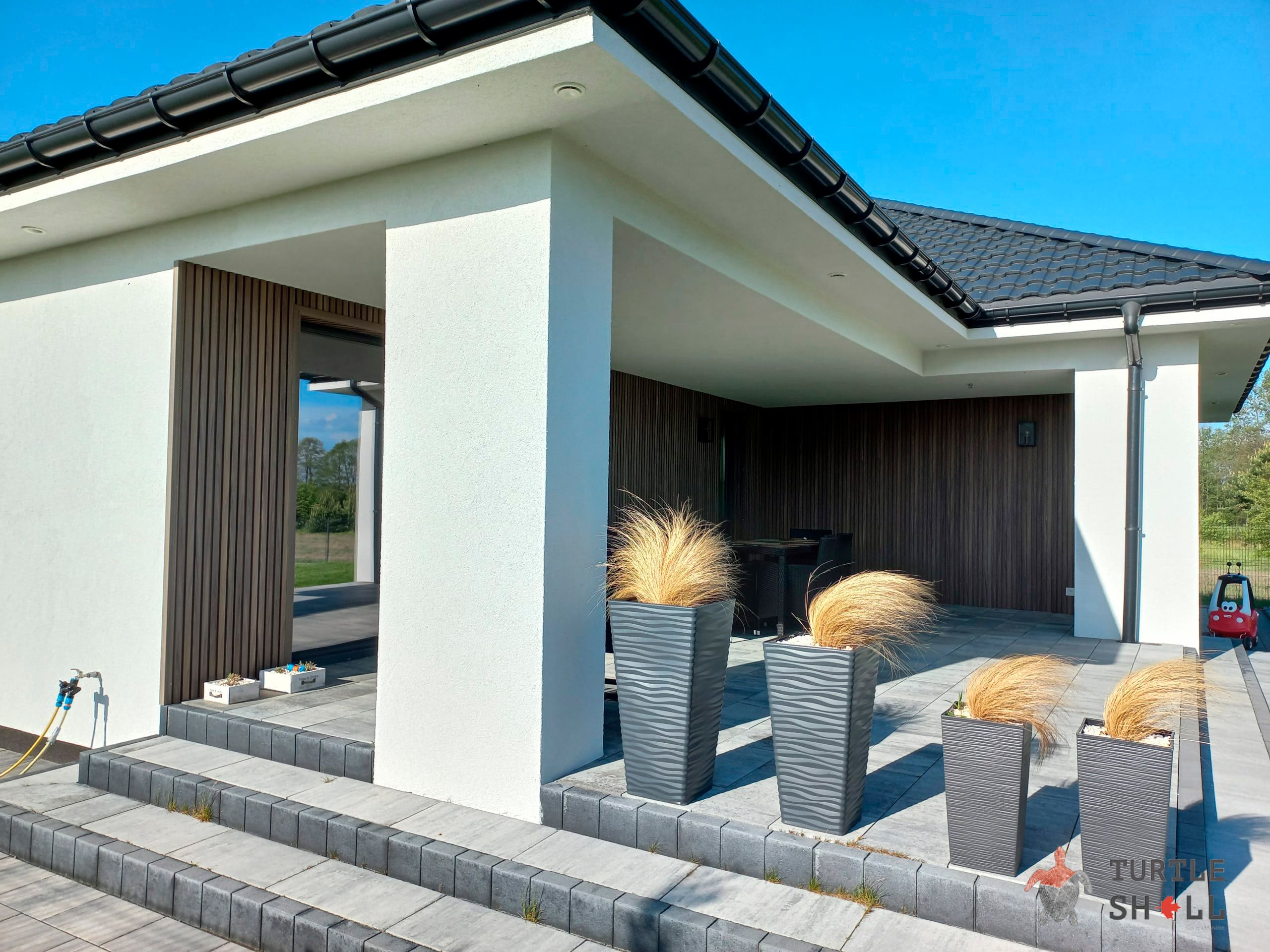 Панели Turtle Shell отличаются от обычных деревянных реек своей высокой долговечностью и устойчивостью к грибку и плесени. Они не требуют постоянной обработки лаками и антисептиками, благодаря чему обеспечивают удобство и экономию времени при уходе за ними.